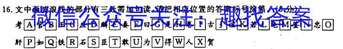 16.文中画波浪线的部分有三处需加句读,请把相应位置的答案标号涂黑。(3分)考A官B王C应D麟E奏FG是H卷T古丁谊K若L龟M鉴N忠O肝P如Q铁R]石ST*U为得W人区贺