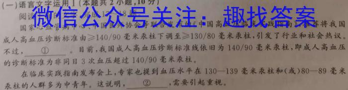 (一)语言文字运用I(本题共2小题,10分)阅读下面的文字,完成17~18题。国家心血管病中心、中国医师协会等联合发布的《中国高血压临床实践指南》,推荐将我国成人高血压诊断标准由≥140/90)毫米汞柱下调至≥130/80毫米汞柱,引发了行业和社会热议不过,①①。目前,我国成人高血压诊断标准线依旧为140/90毫米汞柱,即成人高血压的诊断标准为非同日3次血压超过140/90毫米汞柱。在临床实践指南发布会上,专家也提到血压水平在130139毫米汞柱和(或)80—89毫米汞柱的人群多为中青年。这说明,②,需要引起重视。