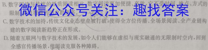 B.数字阅读与传统的纸质阅读相比,数字阅读更加便捷、高效,它不受时间、地点、方式的限制,并且覆盖的用户群更多。百岁?C.数字技术的加持,传统文化业态壁垒被打破,使得全方位传播、全场景阅读、全产业链构建的数字阅读新趋势正在形成。D.随着互联网与数字技术的发展,如今人们能够在虚拟与现实融通的无限制时空内,回到全感官传播场景,使阅读克服各种障碍。