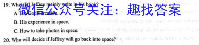 19.What did Jeffrey mainly write in his book?A.The God's creation.B.His experience in space.C.Howto take photos in space.20.Who will decide if Jeffrey will go back into space?
