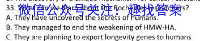 33.What can we learn about the Rochester researchers?A.They have uncovered the secrets of humans.B.They managed to end the weakening of HMW-HA.C.They are planning to export longevity genes to humans