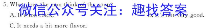 5.What does the man think of the soup?A.It's too thick. B.It's not very good.C.It needs abit more flavor.