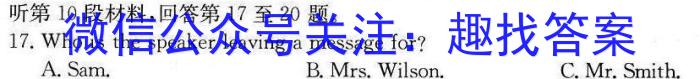 听第10段材料,回答第17至20题。17.Whois the speaker leaving a message for?A.Sam. B.Mrs.Wilson. C.Mr.Smith.