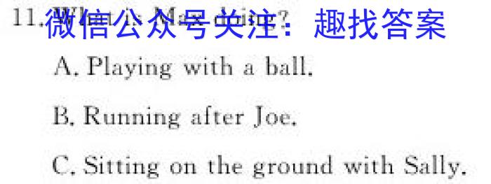 11.What is Max doing?A.Playing with a ball.B.Running after Joe.C.Sitting on the ground with Sally.