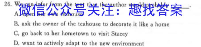 26.We can infer from the text that the author would probably .____A.open her own teahouseB.ask the owner of the teahouse to decorate it like a homeC.go back to her hometown to visit StaceyD.want to actively adapt to the new environment