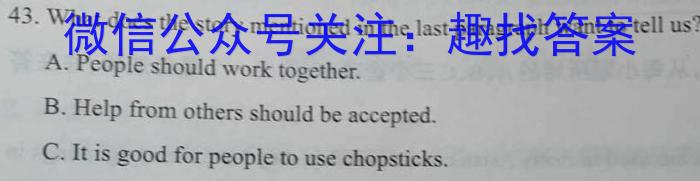 43. What does the story mentioned in the last paragraph want to tell usA. People should work together.B.Help from others should be accepted.C. It is good for people to use chopsticks.