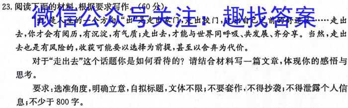 23.阅读下面的材料,根据要求写作。(60分)“出”是人生的一个方向,“出”是走出家门,走出校门,走出自己之前的舒适区……走出去,你才会有阅历,有沉淀,有气质;走出去,才能与世界同呼吸、共发展、齐分享。当然,走出去也是有风险的,收获可能要以选择为前提,甚至以舍弃为代价。对于“走出去”这个话题你是如何看待的?请结合材料写一篇文章,体现你的感悟与思考。要求:选准角度,明确立意,自拟标题,文体不限;不要套作,不得抄袭;不得泄露个人信息;不少于800字。