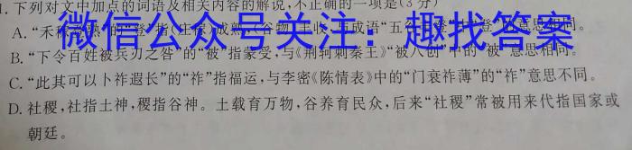 浙江强基联盟2023学年第一学期高一12月联考(24-183A)/语文试卷答案
