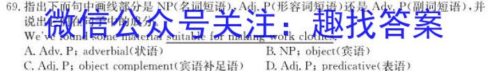 69.指出下面句中画线部分是NP(名词短语) , Adj.P(形容词短语) 还是Adv.P(副词短语) , 并说出它们在句子中的成分。We've found some material suitable for making work clothes.A.Adv.P; adverbial(状语) B.NP; object(宾语)C.Adj.P; object complement(宾语补足语)D.Adj.P; predicative(表语)