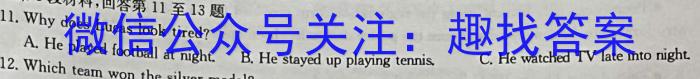 听第8段材料,回答第11至13题。11.Why does Lucas look tired?A. He played football at night.B.He stayed up playing tennis.C.He watched TV late in to night.