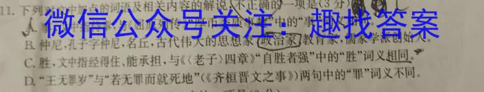 11.下列对文中加点的词语及相关内容的解说不正确的一项是(3分分)A.事,文中指侍奉,与《屈原列传》“厚币委质事楚中的“事”词义相同。B.仲尼,孔子字仲尼,名丘,古代伟大的思想家政治家教育家,儒家学派创始人C.胜,文中指经得住、能承担,与《老子》四章》“自胜者强”中的“胜”词义相同。D.“王无罪岁”与“若无罪而就死地”(《齐桓晋文之事》)两句中的“罪”词义不同。