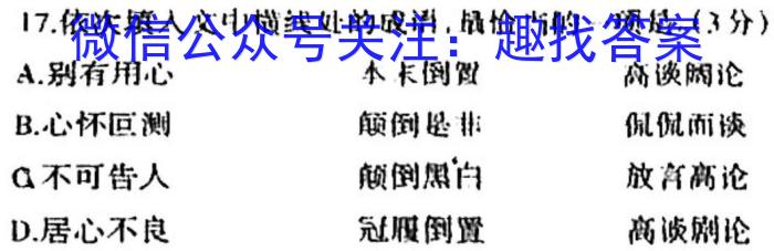 17.依次填入文中横线处的成语,恰当的一项是..(3分)A.别有用心本卡倒霞高谈閃论B.心怀叵测颠倒坠非佩佩而谈不可告人颠倒黑白放言高论D.居心不良冠腰倒置高谈剧论
