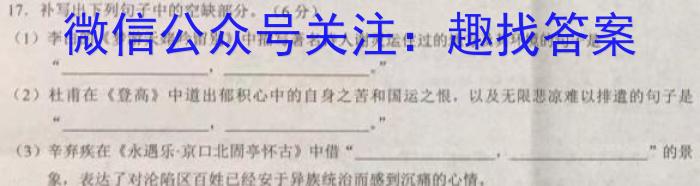 17.补写出下列句子中的空缺部分。(6分)(1)李白的《梦游天姥吟留别》中描写著名诗人谢灵运住过的地方及其环境的句子是“,(2)杜甫在《登高》中道出郁积心中的自身之苦和国运之恨,以及无限悲凉难以排的句子是“..”(3)辛弃疾在《永遇乐·京口北亭怀古》中借“”的景象,表达了对沦陷区百姓已经安于异族统治而感到沉痛的心情,