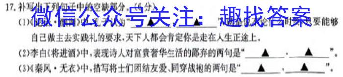 环际大联考“逐梦计划”2023-2024学年度高二年级第一学期阶段考试(三)/语文试卷答案,我们目前收集并整理关于环际大联考“逐梦计划”2023-2024学年度高二年级第一学期阶段考试(三)/语文得系列试题及其答案,更多试题答案请关注我们