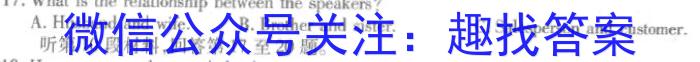 17.What is the relationship between the speakers?A.Husband and wife.B.Brother and sister.听第10段材料,回答第17至20题。C.Salesperson and customer.