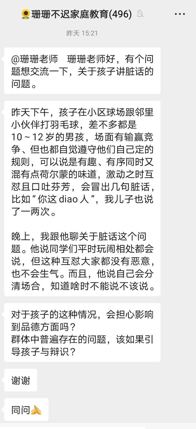 珊珊老师好,有个问题想交流一下,关于孩子讲脏话的问题。